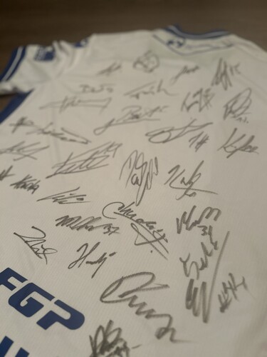Tento originální dres FC Baník Ostrava, je podepsaný celým týmem hráčů. Každý podpis nese kus historie a emocí spojených s klubem a jeho fanoušky, a připomíná nezapomenutelné okamžiky na hřišti. Dres je symbolem týmového ducha, vášně pro fotbal a odhodlání, které je blízké i poslání naší školy - podporovat komunitu a mladé talenty. Pro naši organizaci představuje tento předmět spojení sportu, inspirace a solidarity. Dres je vyroben z kvalitního sportovního materiálu, velikost L, oficiální klubový design.
