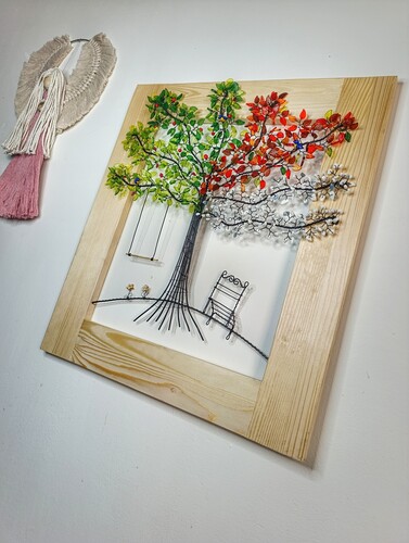 “Tento drátovaný strom jsem tvořila srdcem – každá větev zobrazuje jedno z ročních období, protože i lidský život je plný proměn. Jaro je nadějí, léto radostí, podzim zralostí a zima klidem, který nás učí trpělivosti.