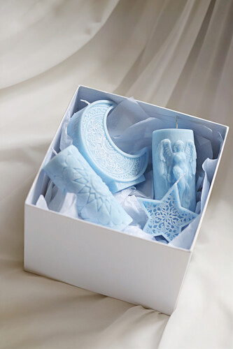 Tento set ručně odlévaných svíček v odstínech modrého nebe vznikl z tvořivosti v jemnosti, kráse a klidu. Každá svíčka nese dotek andělské symboliky – hvězdy, měsíce i křídel – a přináší tak do prostoru naději, harmonii a zklidnění.
