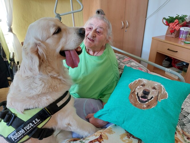 Dražbou polštáře přispějete na činnost spolku Podané ruce - canisterapie. Děkujeme za vaši podporu!