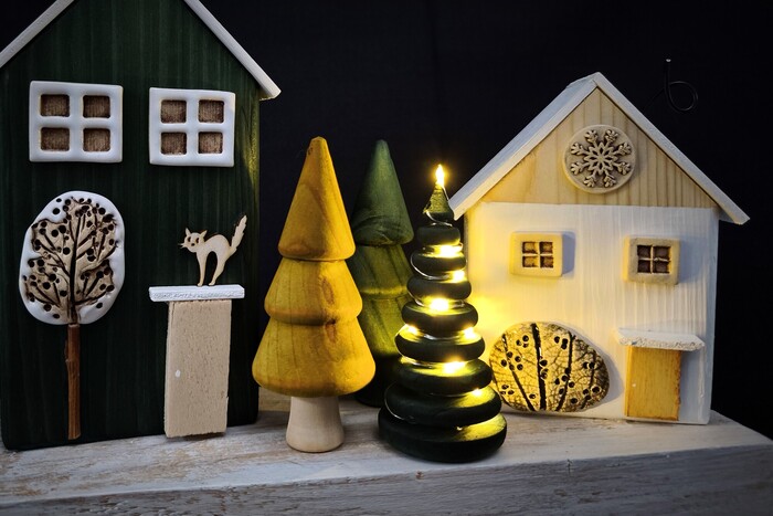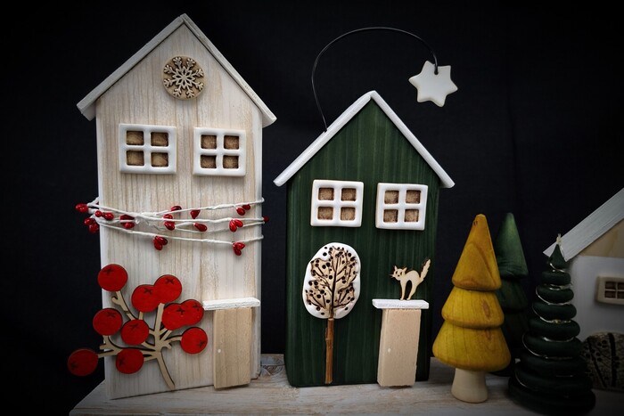 Slezská diakonie přináší světlo do života potřebným a my v DUHOVÉM DOMĚ Ostrava, mimo jiné, vyrábíme tyto domečky. Domky, které mohou evokovat teplo a světlo domova a naši víru. Výrobek "ZIMA NA VSI" vznikl ve spolupráci několika našich uživatelů, kteří u nás navštěvují dřevařsko-textilní a keramickou dílnu.