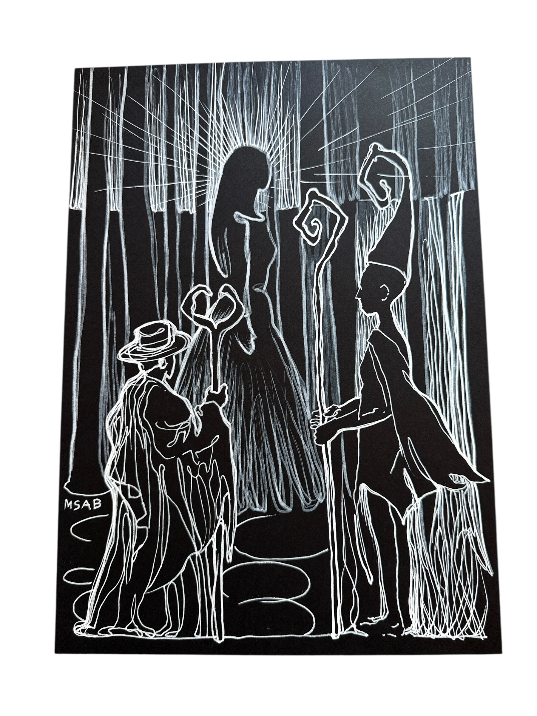 Jsme strážci... mezi nás tě zvem.Jsi v záři svých tajů, linek, čar.V čarovném lese spjati osudem,zemi spolu pozvednem...